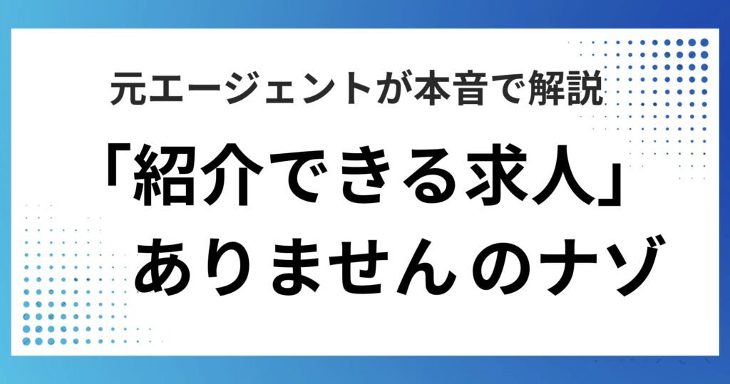 転職エージェントがいいって聞いて、ドキドキしながら登録したのに返信メールには「ご紹介出来る求人がありません。」と書いてあって絶望…これ、実は結構あるあるなんです!主な原因は、エージェントの戦略とのミスマッチにあります。だから「様々なエージ... -