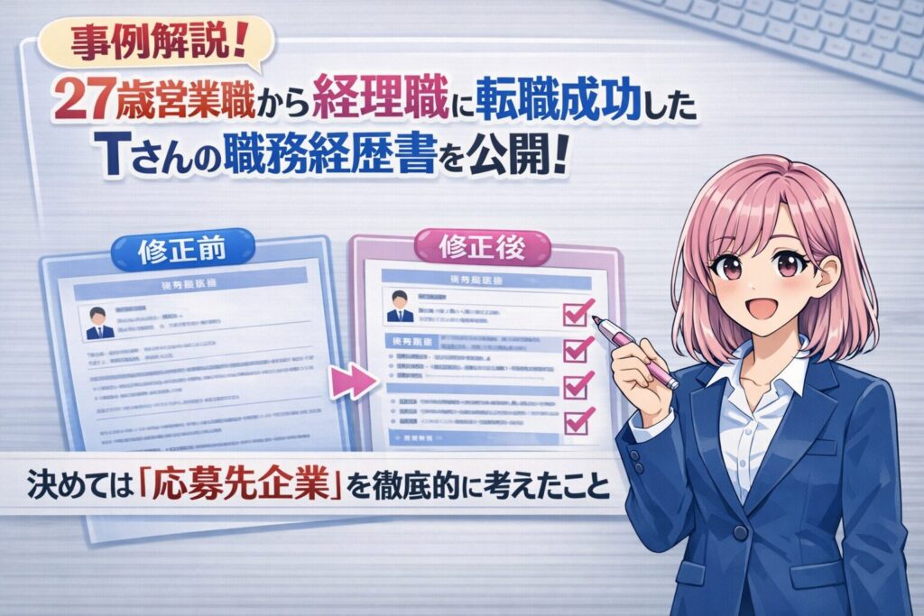 事例でわかる!27歳営業職から経理職に転職成功「Tさんの職務経歴書」を公開