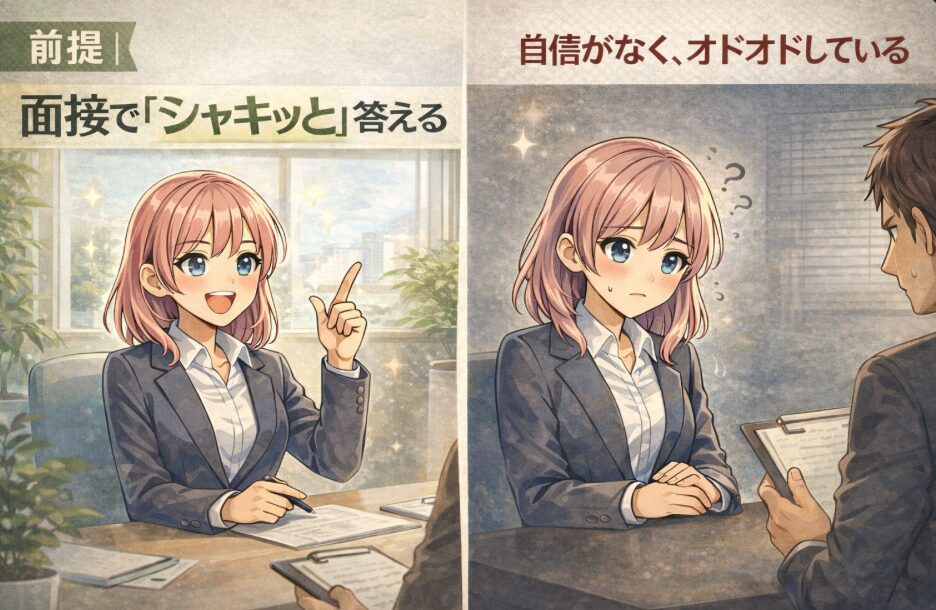 前提|普段よりも少し「シャキッと」答えるだけで面接通過率は上がる